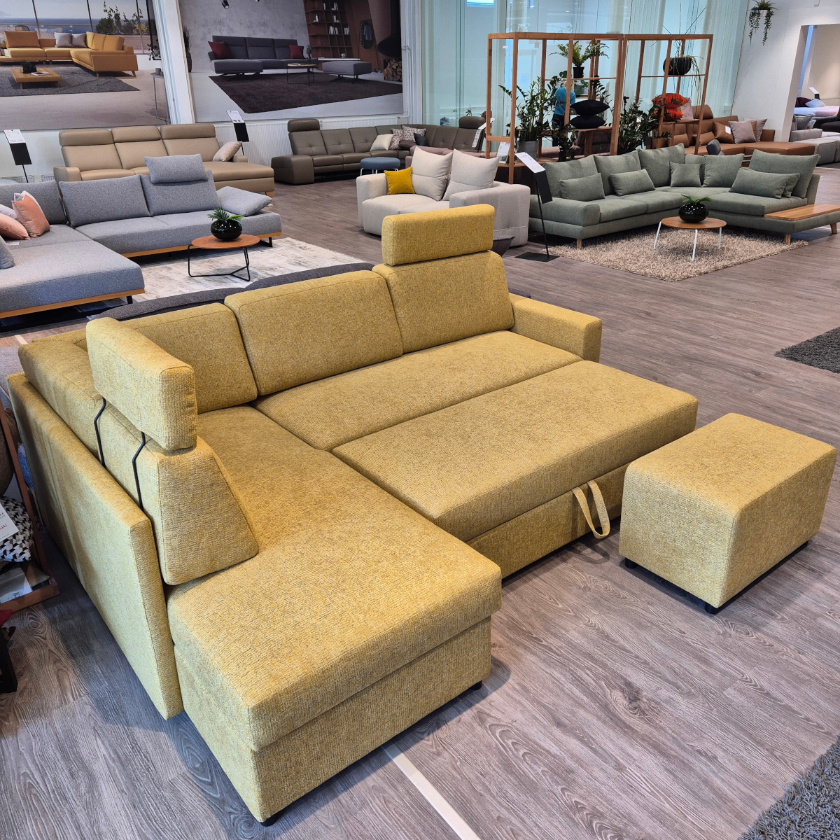 Sedežna garnitura vsebuje izvlečno ležišče, ki je zaradi kakovostnega vzmetenja primerna za vsakodnevno spanje in dvižni predal, ki se skriva v ležalniku. Predal je zelo prostoren in primeren za volumensko večje in lažje predmete.
